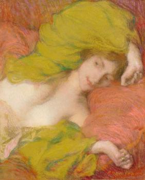 Farniente ou Etude de femme drap�e les mains lev�es