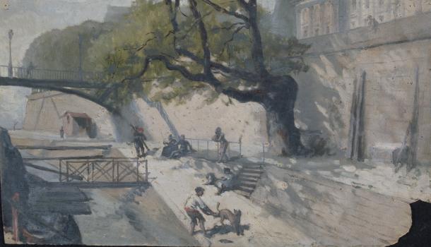 Album des vues de Paris, la berge sous le pont des Beaux-Arts