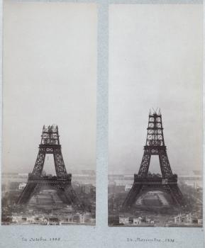 La construction de la Tour Eiffel vue de l'une des tours du palais du Trocad�ro