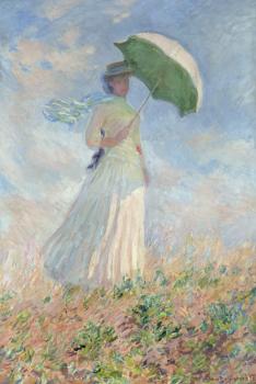 Essai de figure en plein air : femme � l'ombrelle tourn�e vers la droite