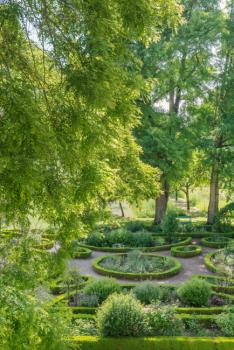 Château de Bouges, broderies de buis et ifs taillés du parterre nord