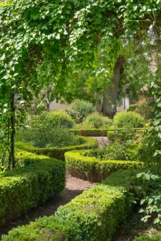 Château d'Angers, parterres et tonnelles du jardin, près du logis du Gouverneur