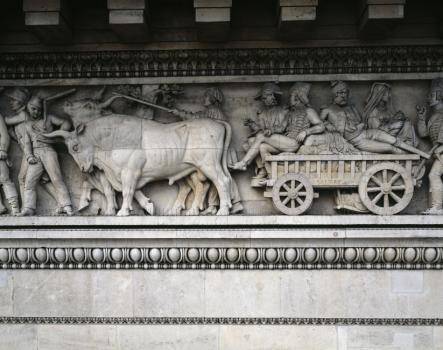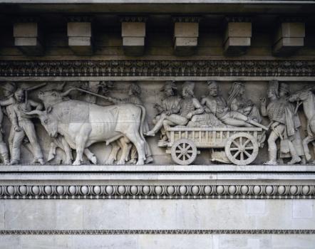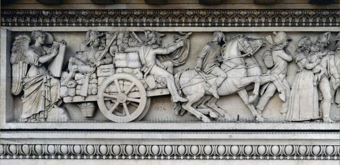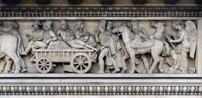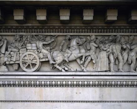 Le Triomphe de Napoléon, détail du larmier et de la trompette de la Renommée