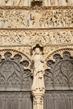 Cathédrale Saint-Étienne de Bourges, statue du Christ enseignant au trumeau du portail du Jugement dernier