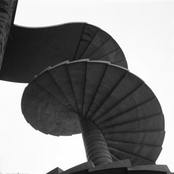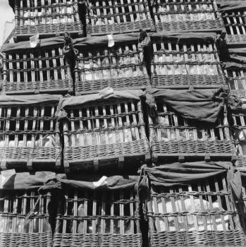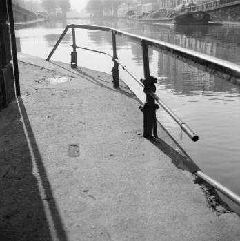 Quai de l'Oise à Paris, bidons empilés vus de face, donnant l'impression de pièces de monnaie debout
