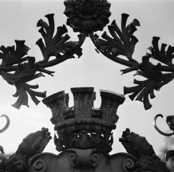 Armes en fer forgé couronnant un pont à Fribourg-en-Brisgau