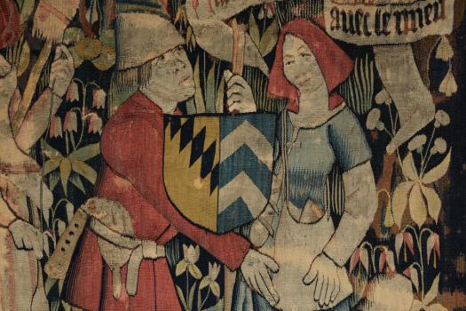 Scène champêtre aux armes et devise de Rigaud d'Aureille, détail