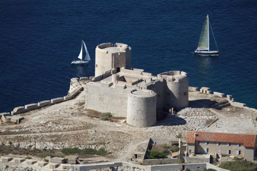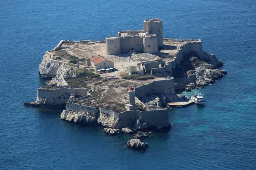 Cité de Carcassonne, vue aérienne du château comtal prise du nord-ouest
