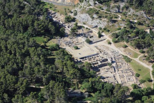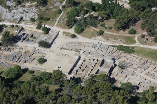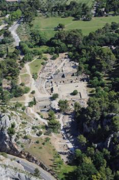 Site archéologique de Glanum, centre monumental et quartier résidentiel vus de l'est