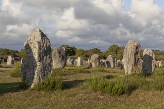 Alignements du Ménec, rangées de menhirs sous les nuages