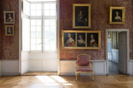 Château de Bussy-Rabutin, chambre de Roger de Bussy, portraits de Mademoiselle d'Orléans, duchesse de Berry et de Madame de Montespan