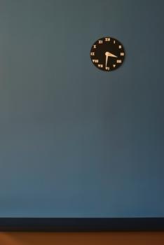 Villa Cavrois, rez-de-chaussée, chambre de jeune homme, horloge et mur