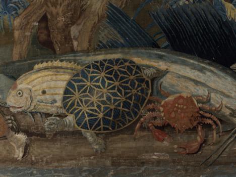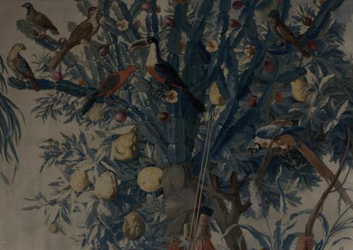 Tapisserie des Gobelins. Tenture des Nouvelles Indes, le chasseur indien. Détail