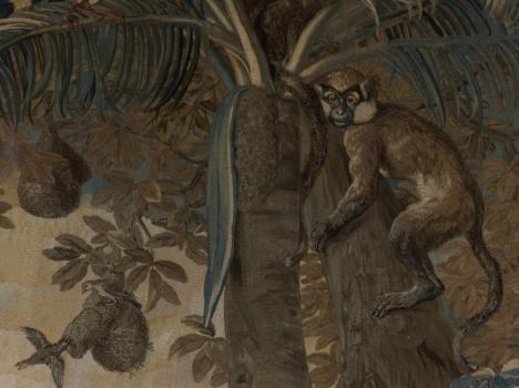 Tapisserie des Gobelins. Tenture des Nouvelles Indes. La négresse portée dans un hamac. Détail