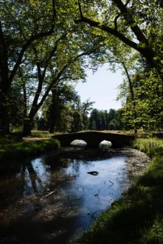 Domaine de Rambouillet, jardin anglais, pont à arches donnant accès à la Chaumière aux coquillages