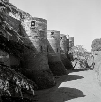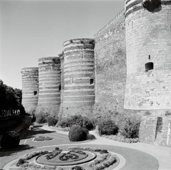 Château d'Angers, enceinte côté sud et une des tours de la porte des Champs