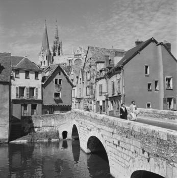 Chartres, le pont Bouju et, en arrière-plan, la cathédrale Notre-Dame