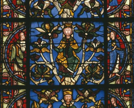 Basilique de Saint-Denis, vitrail de l'Arbre de Jessé (détail : deuxième roi)