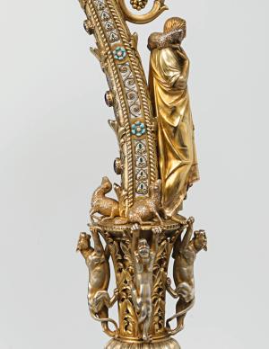 Surtout à fond de glace: La forêt, détail de la jardinière Faunesse et de la partie centrale du plateau à glace