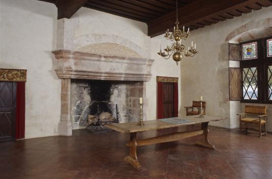 Château de Gramont, château gascon, cheminée de la bibliothèque Dichamp