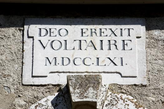 Château de Voltaire, ancienne église paroissiale, inscription de la façade occidentale