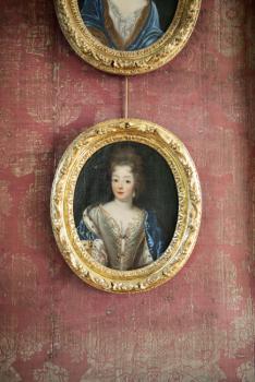 Château de Bussy-Rabutin, chambre de Roger de Bussy, portraits de Mademoiselle d'Orléans, duchesse de Berry et de Madame de Montespan