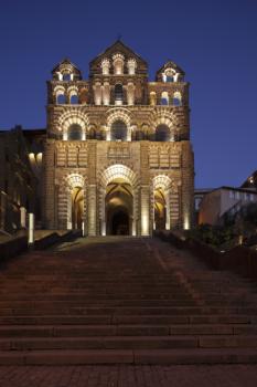 Cathédrale Notre-Dame du Puy-en-Velay, façade occidentale, vue de nuit