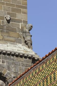 Cathédrale Notre-Dame du Puy-en-Velay, clocher, personnage scuplté à un angle du deuxième étage