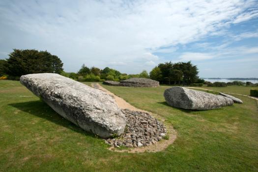 Vue aérienne des sites mégalithiques de Locmariaquer, depuis le nord-ouest