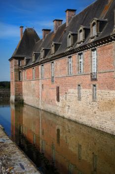 Château de Carrouges, aile sud-ouest vue des étangs asséchés
