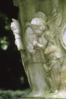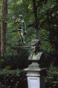 Château de Champs-sur-Marne, parterre de l'est, buste de philosophe et statue de jeune chasseur