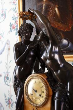Pendule borne à socle de marbre, Psyché couronnant l'amour