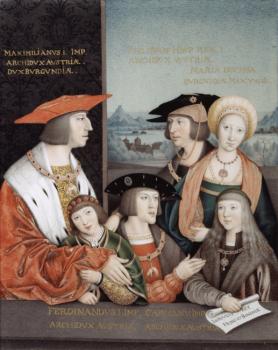 Anges tenant le portrait de Frédéric III, grand-père de Marguerite d'Autriche