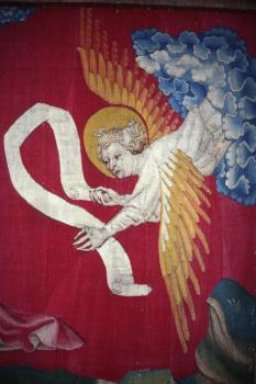 Grand personnage, détail d'un des anges tenant une bannière