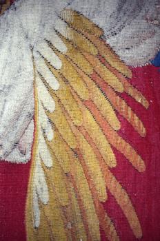 L'ange au livre, détail de l'aile de l'ange au phylactère