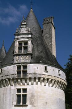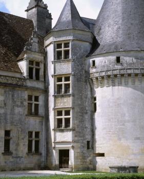 Château de Puyguilhem, tourelle hexagonale de l'escalier reliant le corps de logis principal et la grosse tour