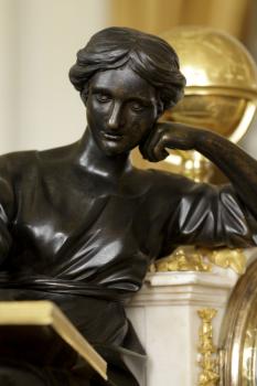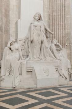La Ville de Paris et l'Architecture présentant les "Vues pittoresques", avec en arrière plan un tableau montrant un pont de Paris