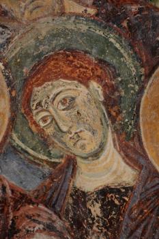 Chapelle des moines de Berzé-la-Ville, représentation d'un apôtre à la gauche du Christ