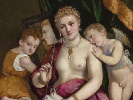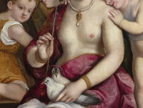 Château de Maisons, escalier, groupe de putti illustrant l'amour, détail