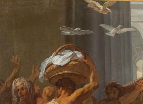Château de Maisons, escalier, groupe de putti illustrant l'amour, détail