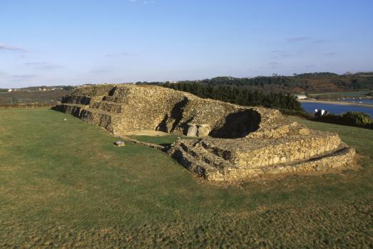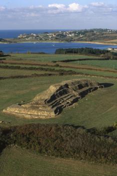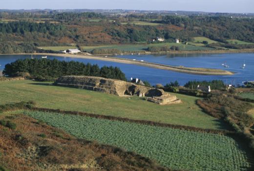Cairn de Barnenez, la "carrière" vue du sommet du cairn