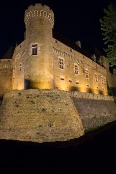 Château de Castelnau-Bretenoux, angle sud, de nuit