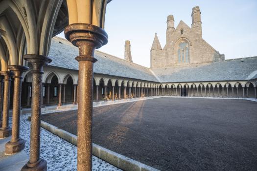 Abbaye du Mont-Saint-Michel, le cloître restauré vu depuis l'ouest