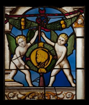 Anges tenant le portrait de Frédéric III, grand-père de Marguerite d'Autriche