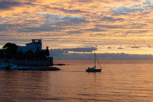 Silhouette du Mont-Saint-Michel se détachant sur le ciel, au coucher de soleil