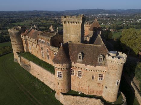 Château de Castelnau-Bretenoux, vue aérienne depuis le sud-ouest