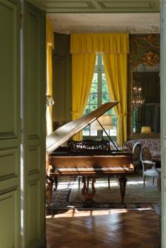 Château de Bouges, enfilade de la salle à manger, de la salle de jeux et du grand salon vue depuis la salle à manger