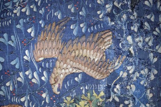 Les Bêtes sont jetées dans l'étang de feu, détail d'un aigle fondant sur les Bêtes