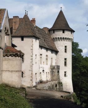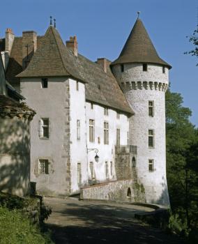 Château d'Aulteribe, façades est et nord vues derrière les arbres du ravin