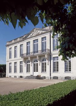 Château de Puyguilhem, vue d'ensemble côté est et labyrinthe de buis